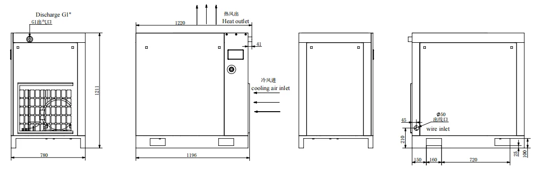 The high-pressure cooling system is adopted, and the heat dissipation efficiency is high, so that the air compressor can still work continuously in a high temperature and high humidity environment