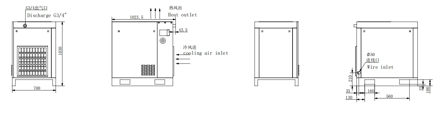 The high-pressure cooling system is adopted, and the heat dissipation efficiency is high, so that the air compressor can still work continuously in a high temperature and high humidity environment