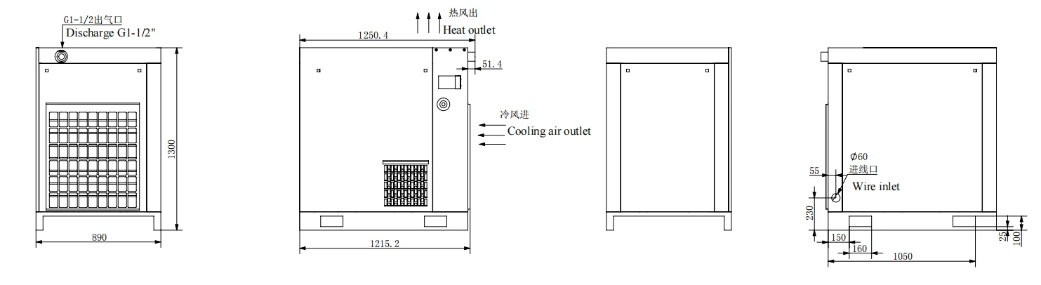 The high-pressure cooling system is adopted, and the heat dissipation efficiency is high, so that the air compressor can still work continuously in a high temperature and high humidity environment